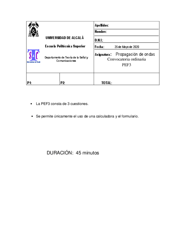 He publicado nuevos examenes de 2º Propagación de Ondas: Exámenes