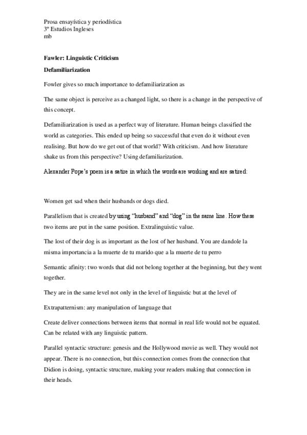 He publicado nuevos apuntes de 3º Prosa Ensayística y Periodística: Fowler-Defamiliarization-.pdf