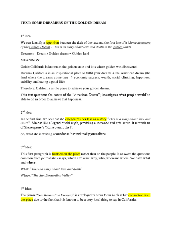 He publicado nuevos apuntes de 3º Prosa Ensayística y Periodística: essay Some Dreamer of the Golden Dream