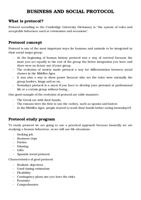 Business and Social Protocol