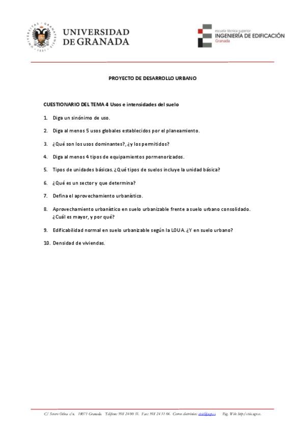 He publicado nuevos ejercicios de 3º Proyecto de Desarrollo Urbano: CUESTIONARIO-4.pdf