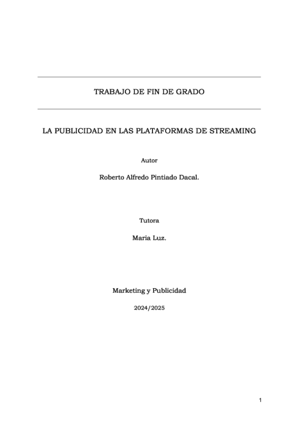 Este fue mi TFG para el grado superior de Marketing y Publicidad trata sobre la publicidad en las plataformas de streaming.