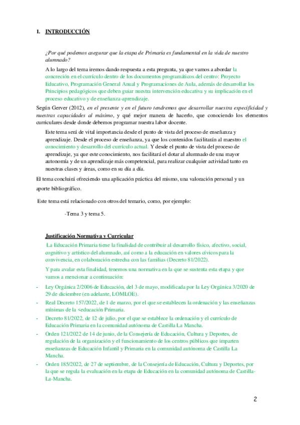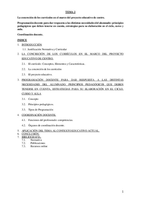 Tema 2. La concreción de los currículos en el marco del proyecto educativo de centro.