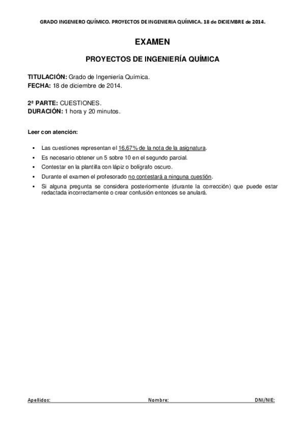 He publicado nuevos examenes de 4º Proyectos en Ingeniería Química: 2º Parcial 18 Diciembre 2014