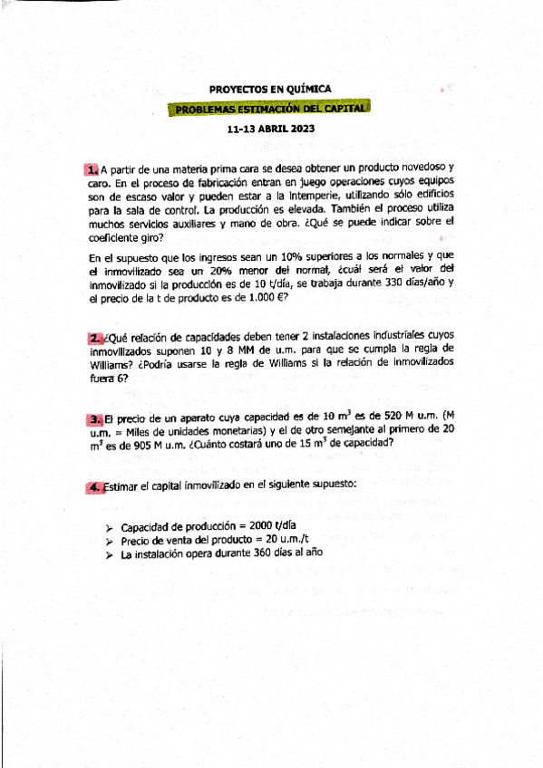 He publicado nuevos apuntes de 4º Proyectos en Química: Problemas tema estimación del capital
