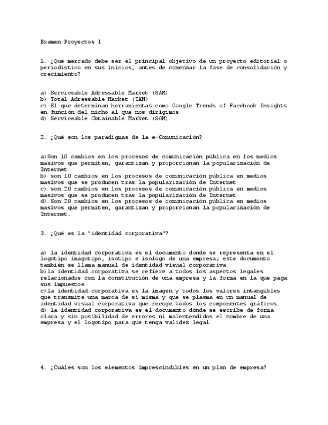 He publicado nuevos examenes de 4º PROYECTOS PERIODÍSTICOS ESPECIALIZADOS I: Examen-PROYECTOS-1.pdf