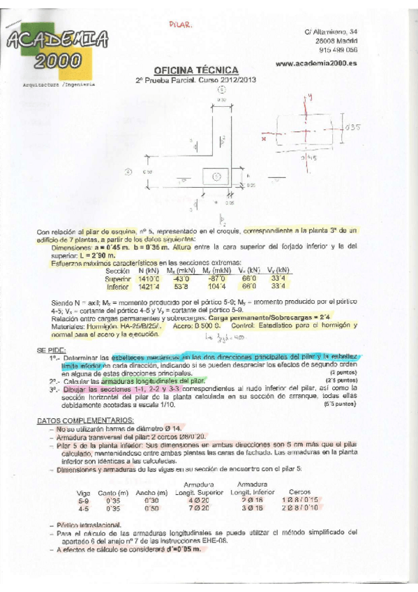 He publicado nuevos ejercicios de 4º Proyectos Técnicos II: Ejercicio pilar metálico.pdf