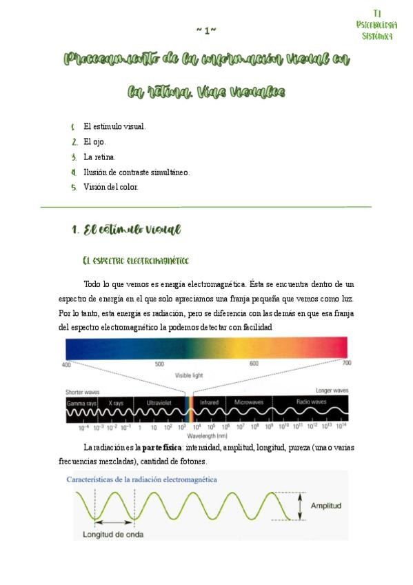 TEMA 1. VISIÓN I (primera parte de visión): Con imágenes, explicaciones claras, apuntes de clase y diapositivas.