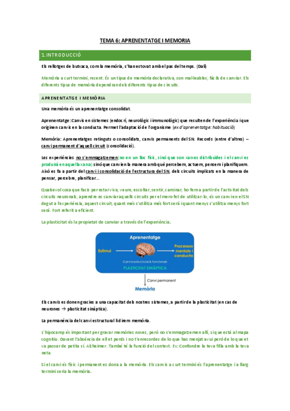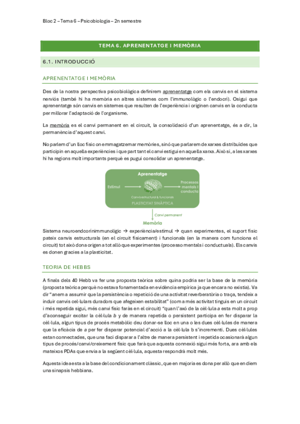 He publicado nuevos apuntes de 2º Psicobiología: Tema 6: Aprenentatge i Memòria.pdf