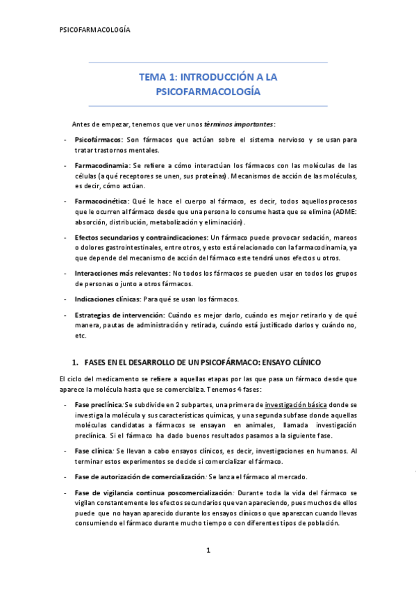 PSICOFARMACOLOGÍA TEMAS 1-3 (1º PARCIAL)