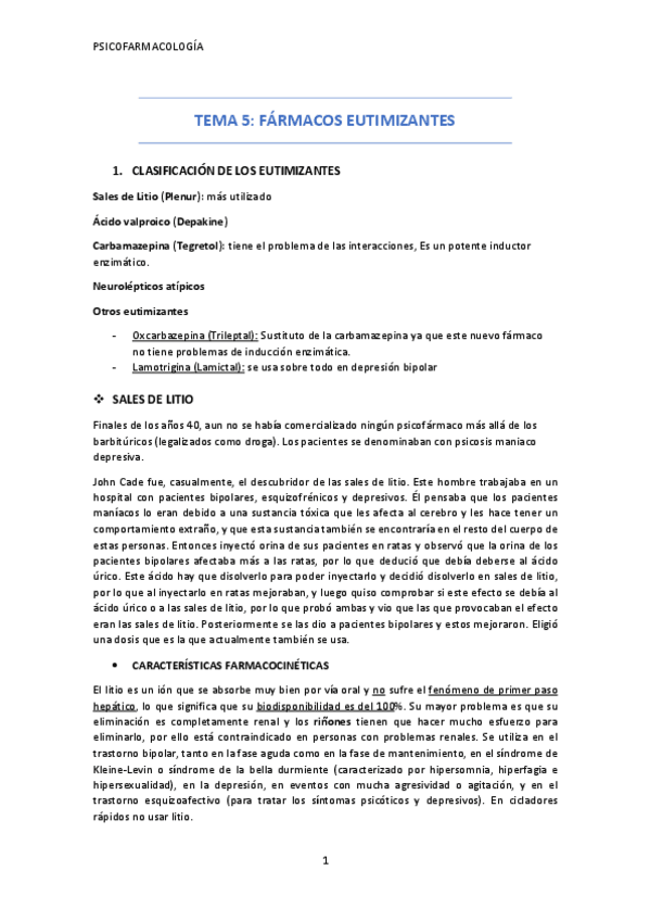 He publicado nuevos apuntes de 4º Psicofarmacología: Tema-5-FarmacosEutimizantes.pdf
