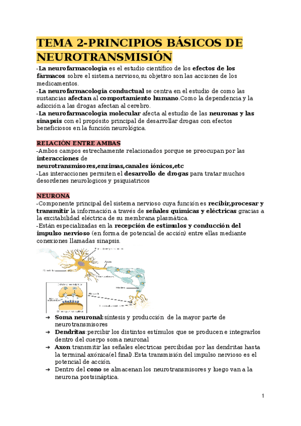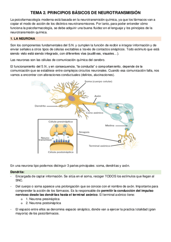 He publicado el tema 2 de psicofarmacología sobre los principios básicos de neurotransmisión