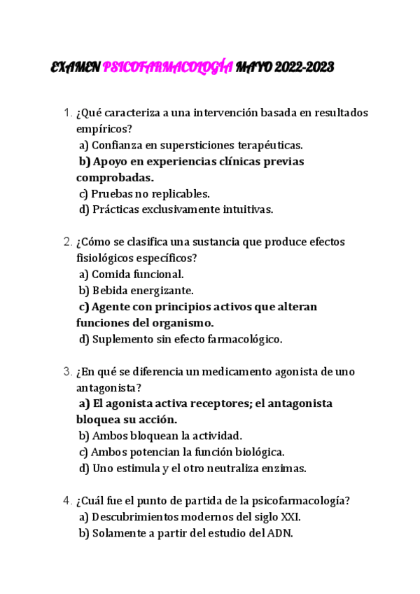 He publicado nuevos examenes de 3º Psicofarmacología: EXAMEN-MAYO-2020-2021-PSICOFARMACOLOGIA-PREGUNTAS-DE-PRACTICA.pdf