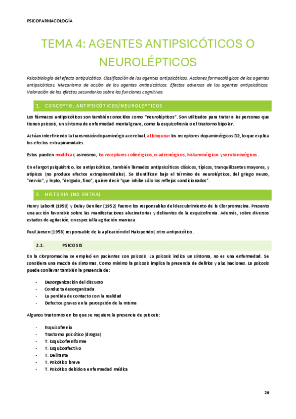 He publicado el tema 4 de psicofarmacología sobre los Agentes antipsicóticos: neurolépticos