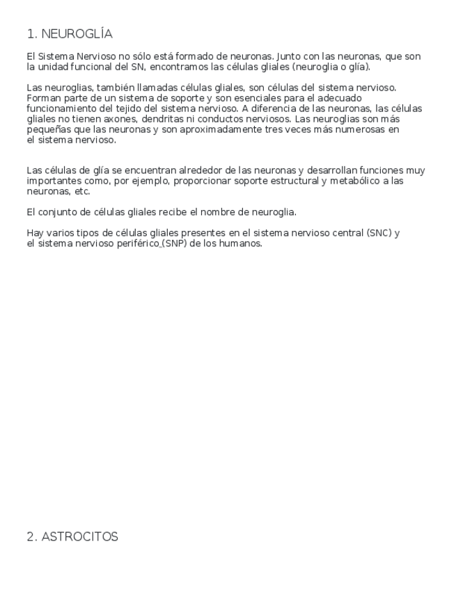 He publicado nuevos apuntes de 1º Psicofisiología: Neuroglia.docx