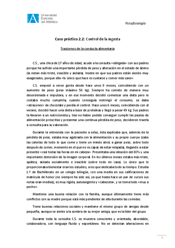 Control de la ingesta Trastornos de la conducta alimentaria (Caso clinico)