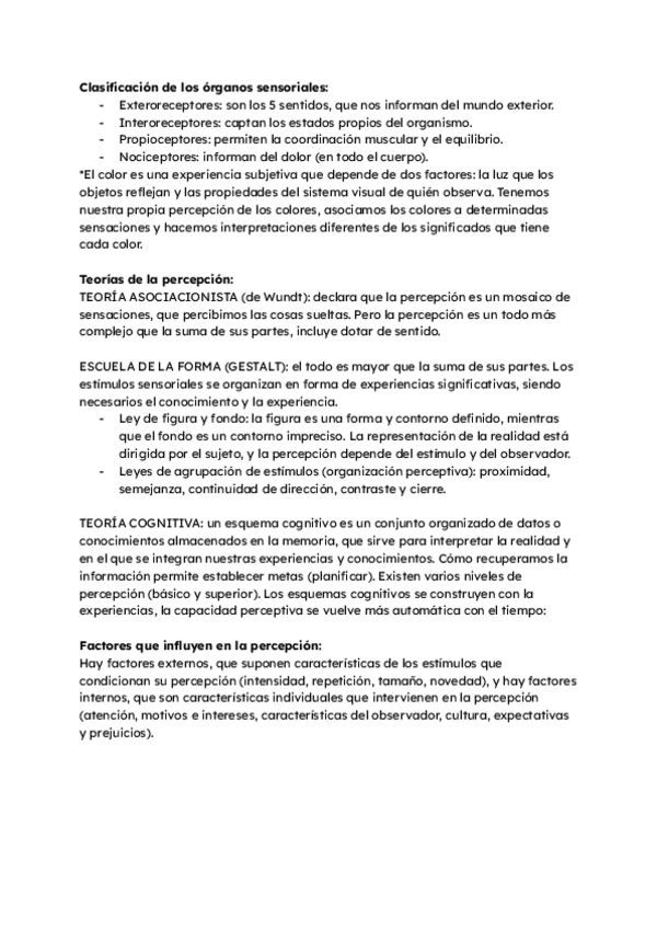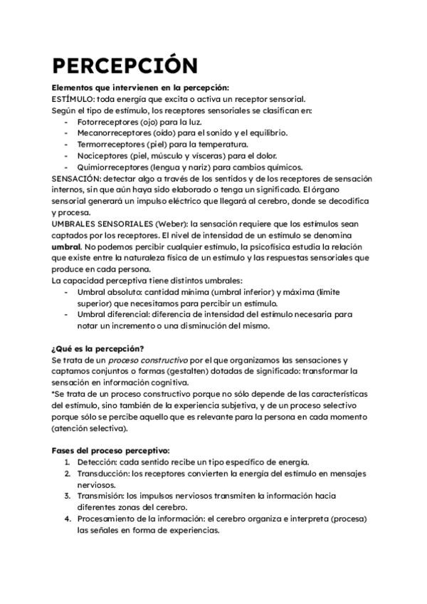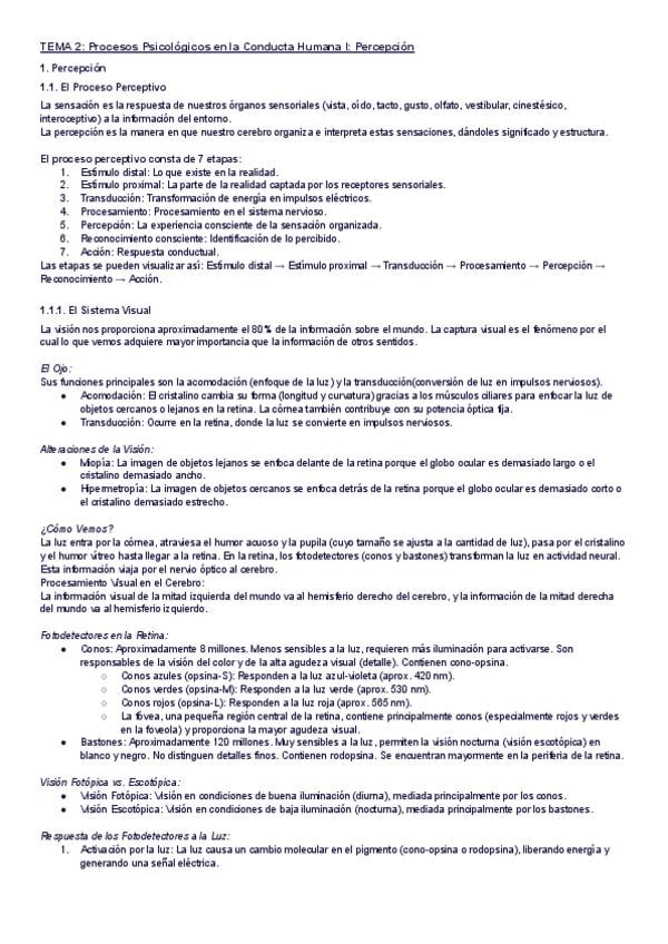 Resumen del tema 3 de Psicología de 2do bach: Procesos cognitivos básicos I: sensación y percepción.