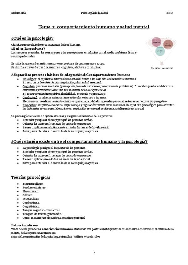 En este documento se encuentra el tema 1 de la asignatura "Psicología de la Salud" del Grado en Enfermería, de la profesora Bibinha del curso académico 2025-2026
