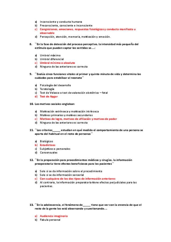 Preguntas tipo test de psicología médica del grado de medicina; clase del día 05/03/2026. Curso 2025-2026.