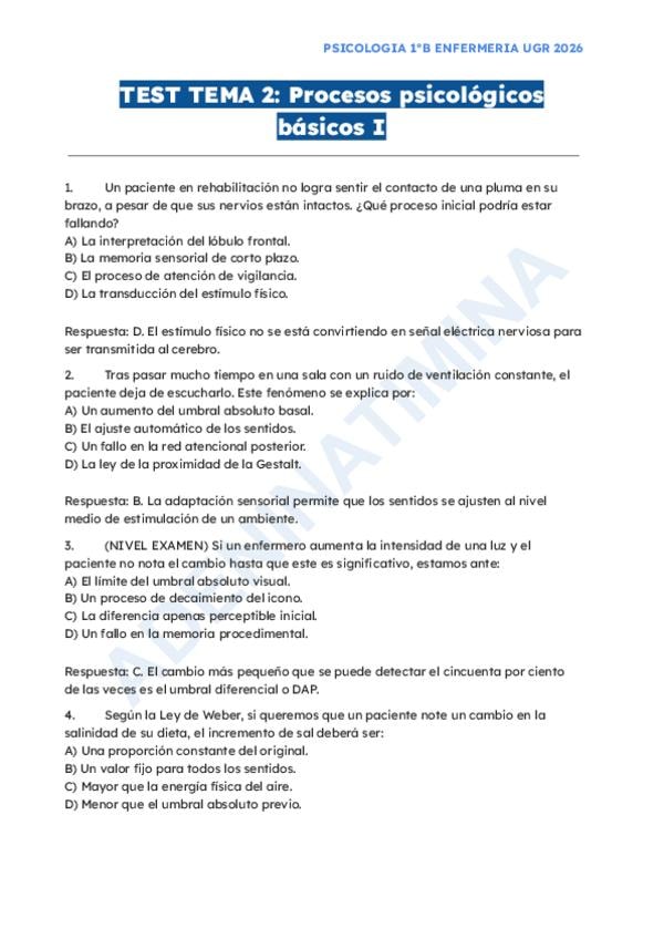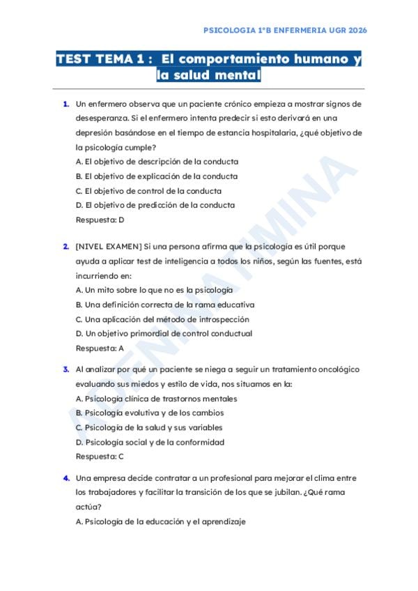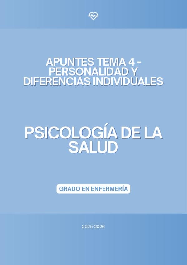 En este documento se encuentra el tema 4 de la asignatura "Psicología de la Salud" del Grado en Enfermería, de la profesora Bibinha del curso académico 2025-2026