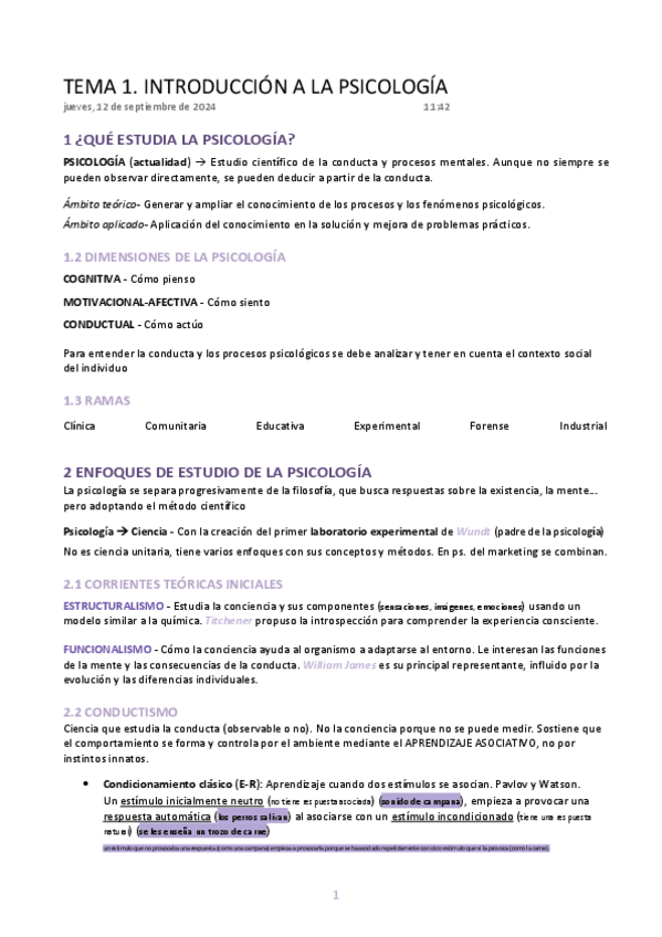 TEMA 1 PSICOLOGÍA
