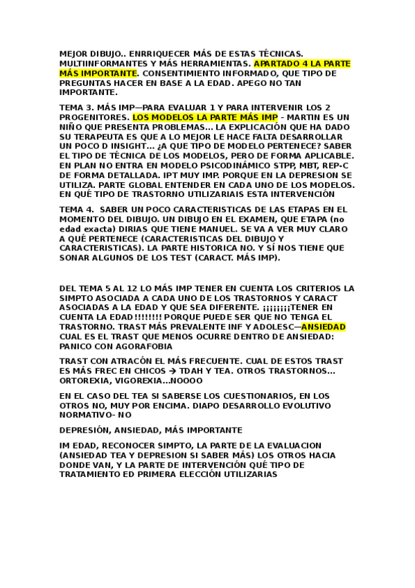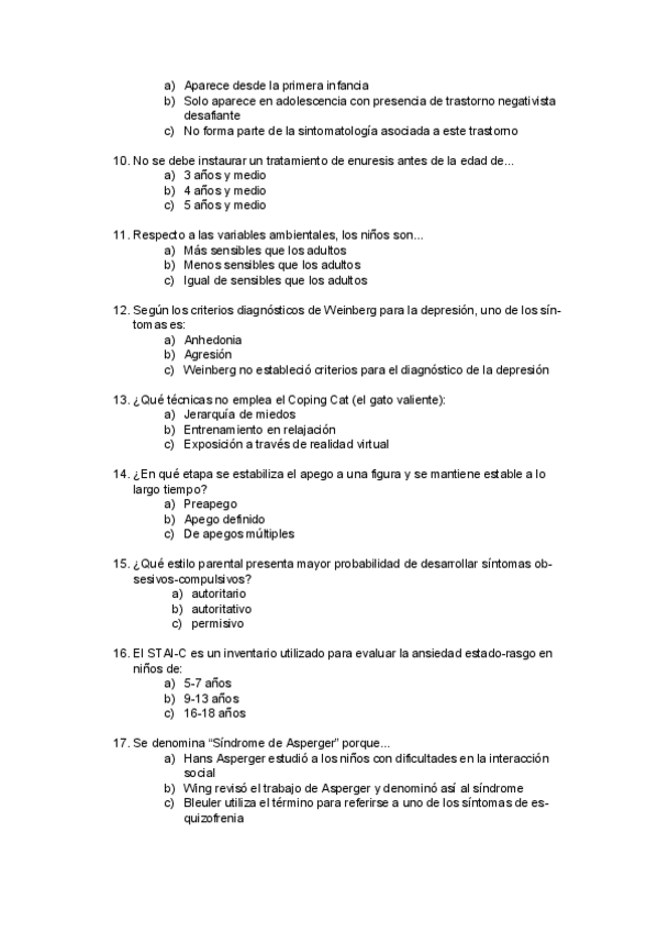 He publicado nuevos examenes de 4º Psicología Clínica Infantojuvenil: Preguntas-Infanto.docx