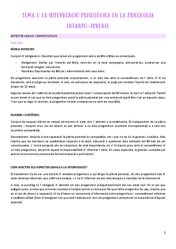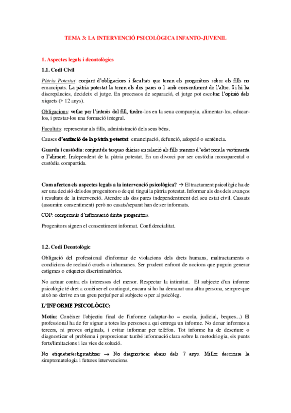 APUNTS PSICO Clínica INFANTO-JUVENIL