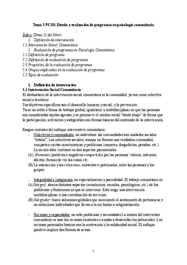 Apuntes/Temario Psicología Comunitaria de los Servicios Sociales