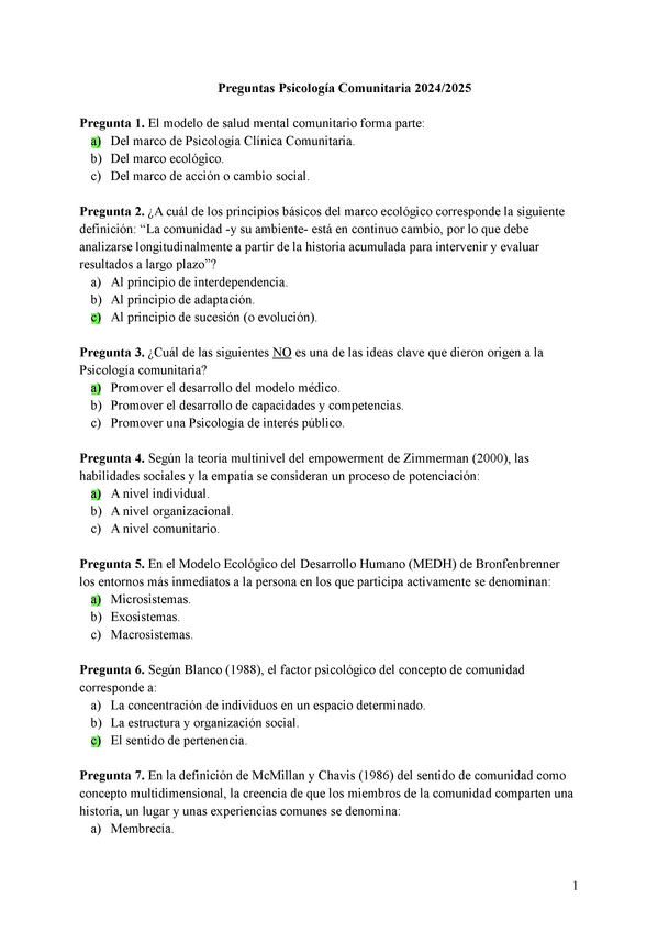 EXAMENES RESUELTOS AÑO 2024-2025 PSICOLOGÍA COMUNITARIA