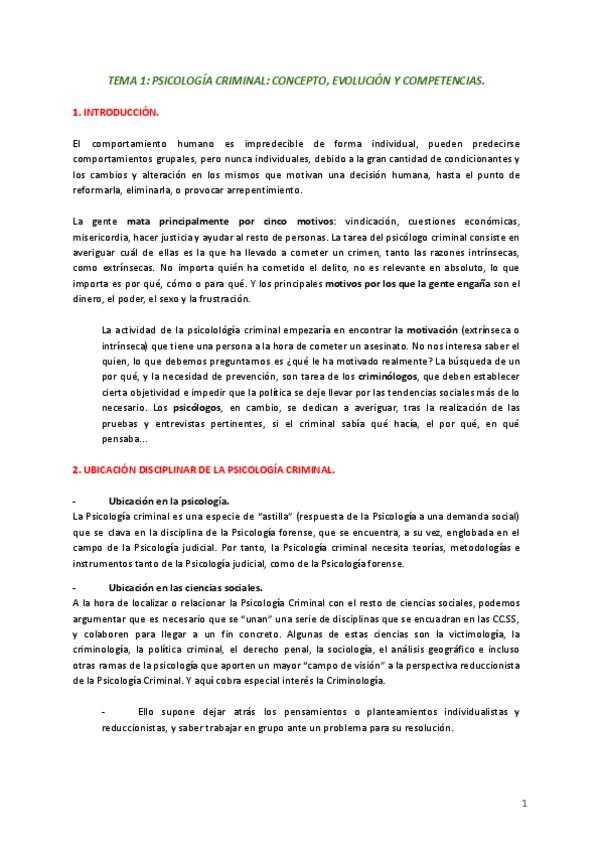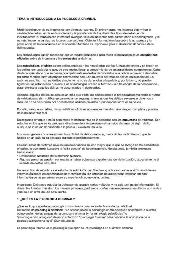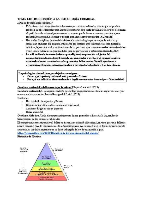 Temario completo de Psicología Criminal, todo sacado de los pdf del aula virtual.
