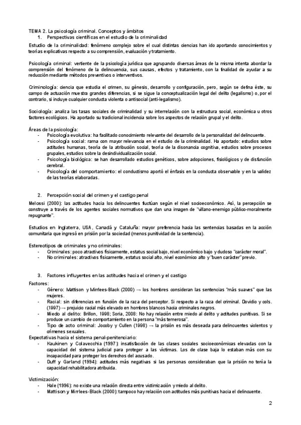 APUNTES TEMAS 2-15 MANUAL "PSICOLOGIA CRIMINAL"
