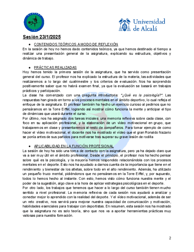 He publicado nuevos trabajos de 1º Psicología de la Actividad Física y del Deporte: Memoria-del-curso.pdf
