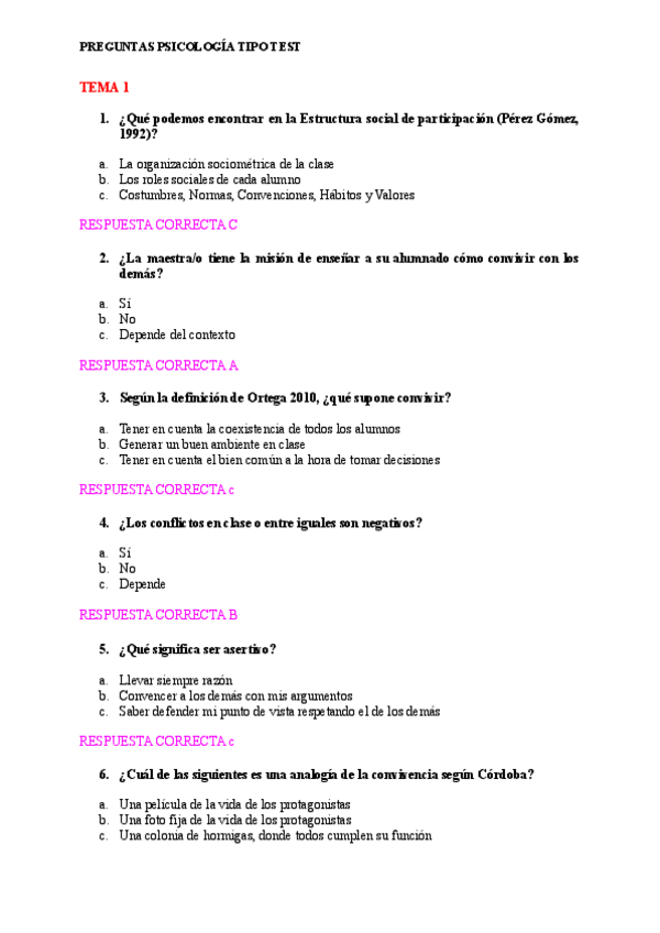 He publicado nuevos apuntes de 2º Psicología de la Convivencia Escolar en Educación Primaria: Tipo test