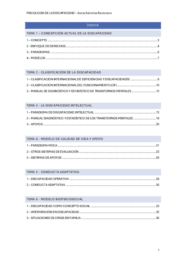He publicado nuevos apuntes de 3º Psicología de la Discapacidad: TEMARIO-DISCAPACIDAD.pdf