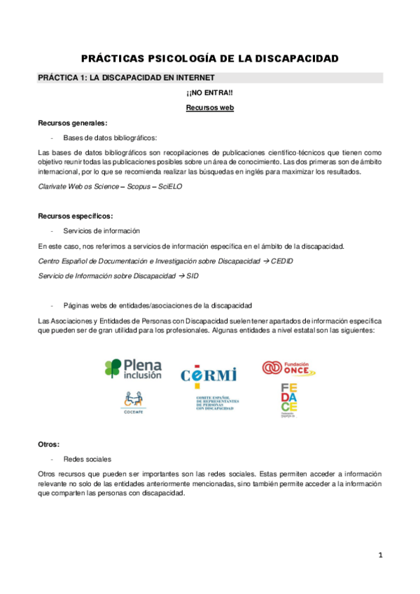 He publicado nuevos apuntes de 3º Psicología de la Discapacidad: PRACTICAS-DISCAPACIDAD.pdf