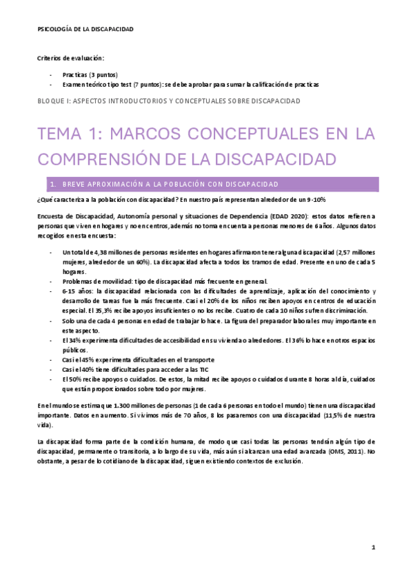 He publicado nuevos apuntes de 3º Psicología de la Discapacidad: Apuntes y lecturas tema 1 (2024)