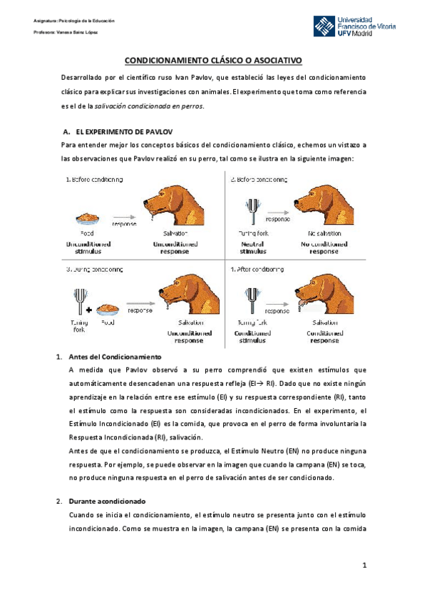 He publicado nuevos ejercicios de 1º Psicología de la educación: Tema2_El proceso de aprendizaja_ejemplos de Condicionamiento Clásico_Psicología.pdf