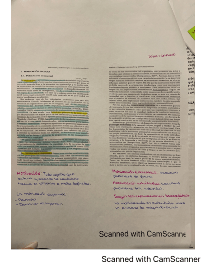 Fotocopias de los temas 1-6 de Psicología de la Educación subrayadas y con anotaciones.