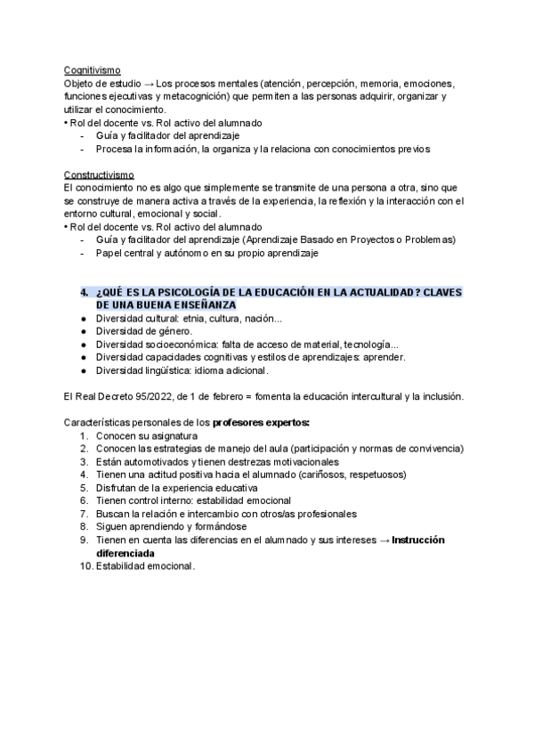 Temas clases docentes - Psicología de la Educación