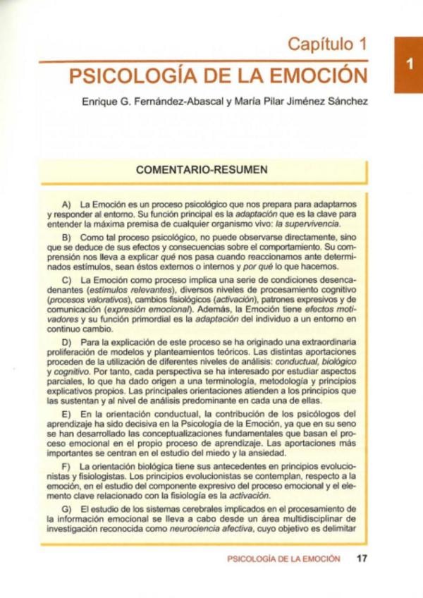 Resúmenes Psicología de la Emoción