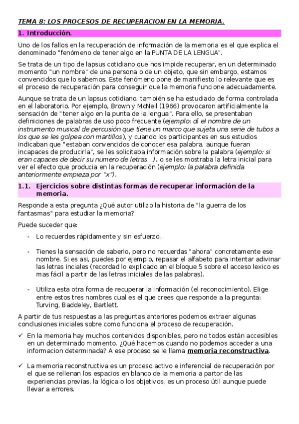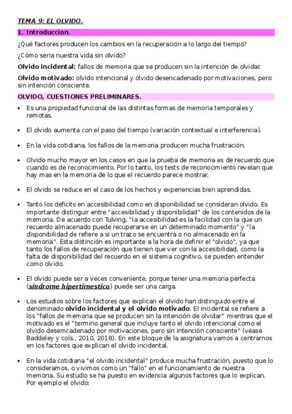 He publicado nuevos apuntes de 2º Psicología de la Memoria: MEMORIA-T10-PLN.pdf