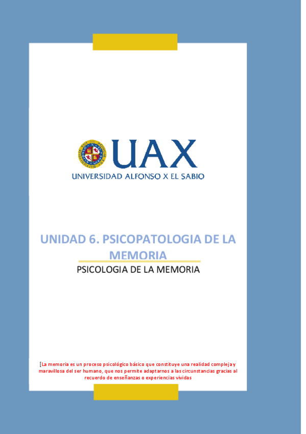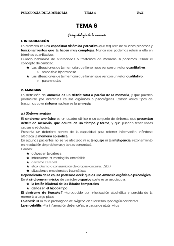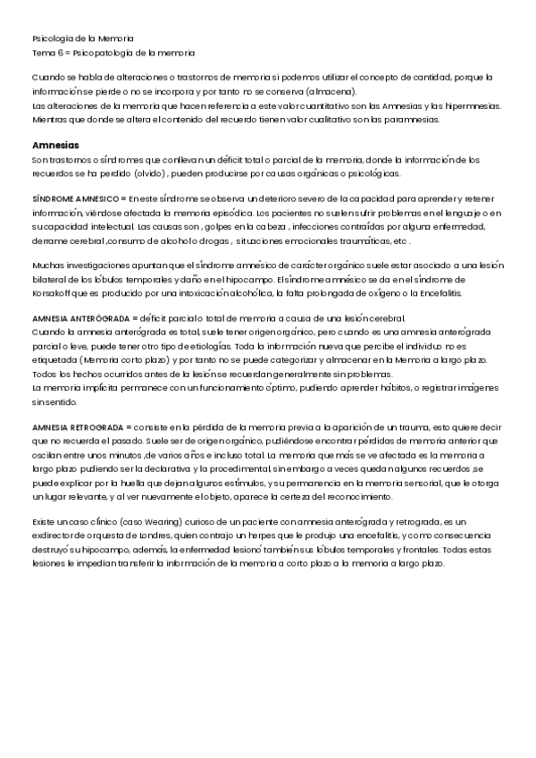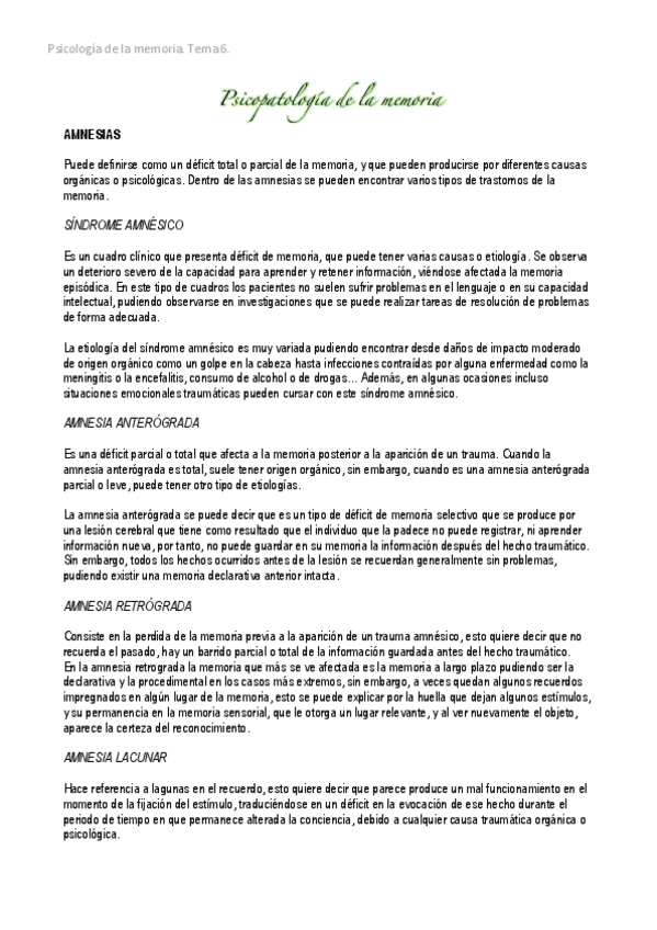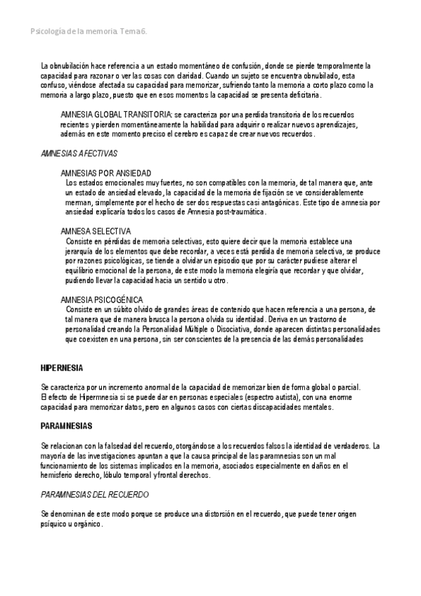 He publicado nuevos apuntes de 1º Psicología de la Memoria: T6-Psicopatologia-de-la-memoria.pdf