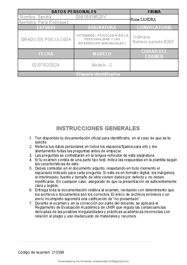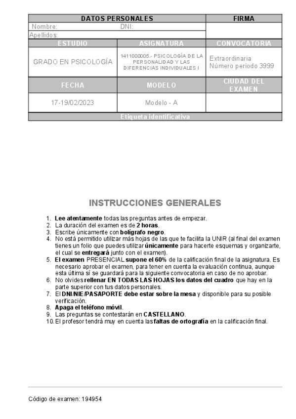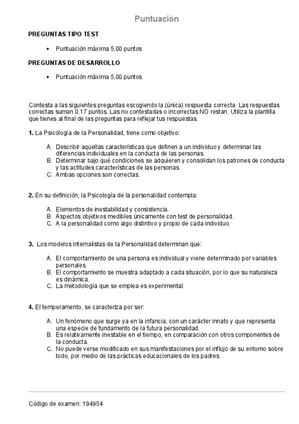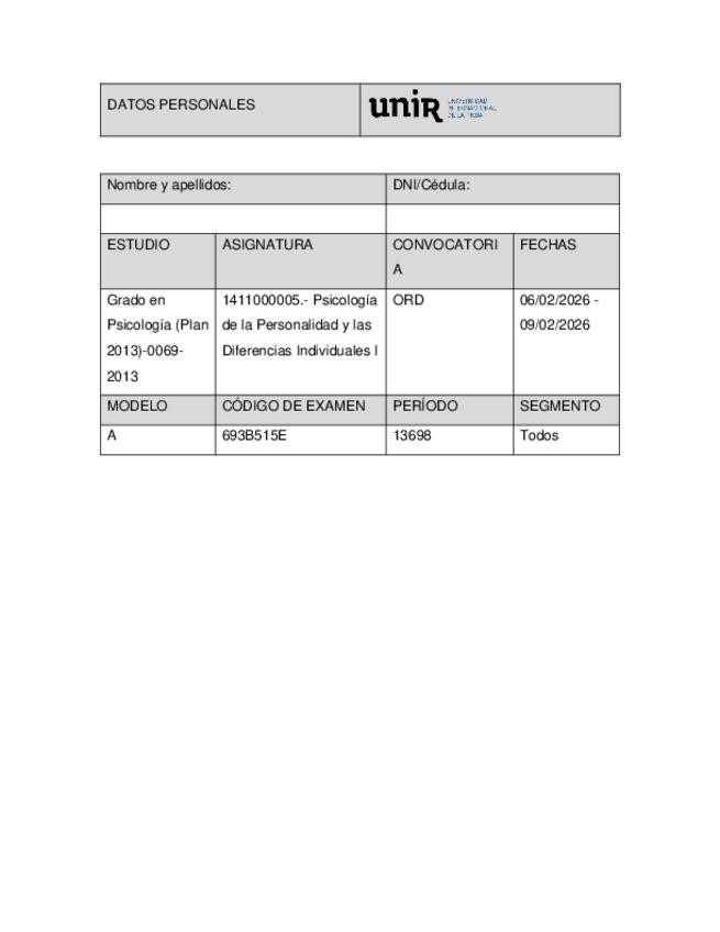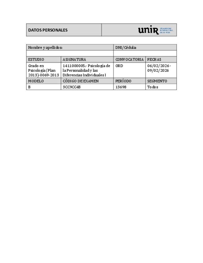 Examen Febrero 2026 Psicología de la personalidad y las diferencias individuales
