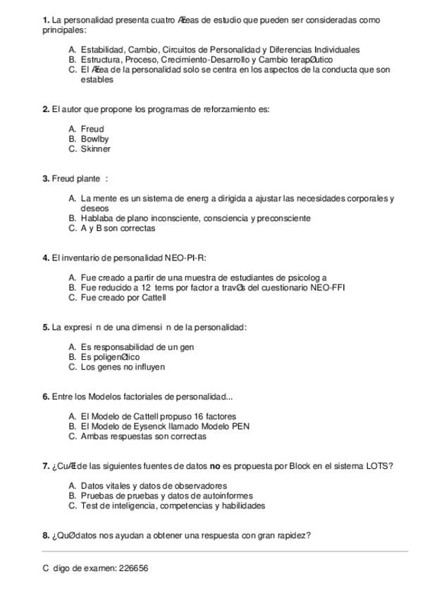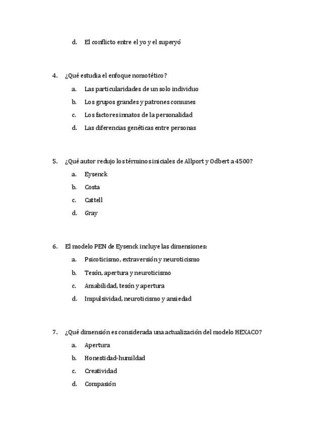 He publicado nuevos examenes de 1º Psicología de la personalidad y las diferencias individuales I: Examen-personalidad-2023.pdf
