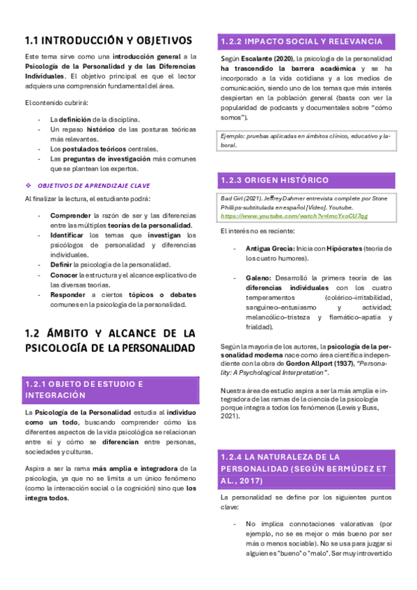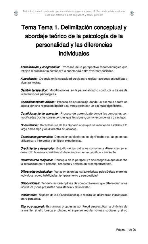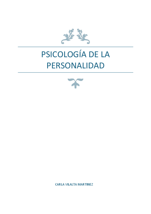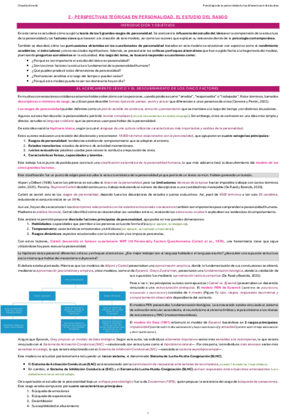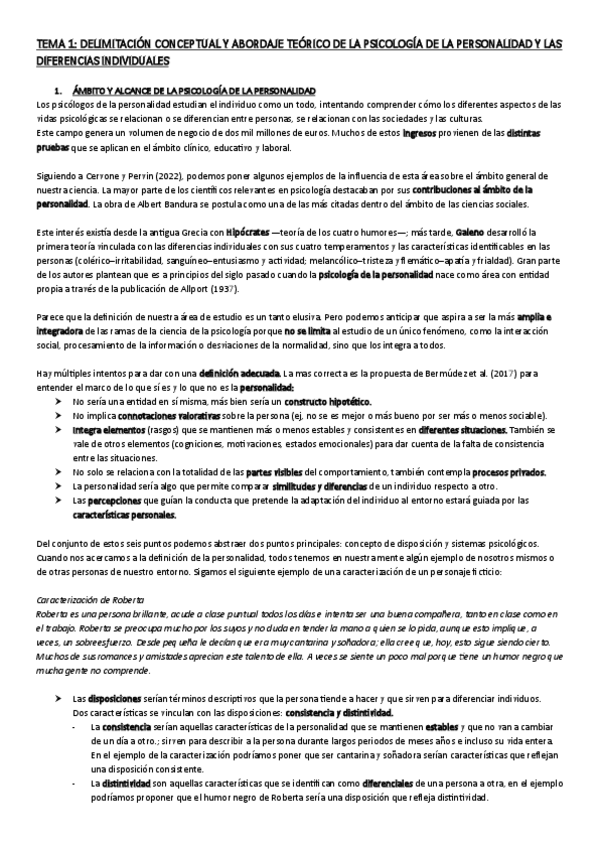 Resumen del tema 1 de psicología de la personalidad y las diferencias individuales I. Con glosario incluido. El contenido de este archivo es propiedad intelectual de @Dzhuliii. Su finalidad es el apoyo al estudio. Queda prohibida su reproducción o uso co