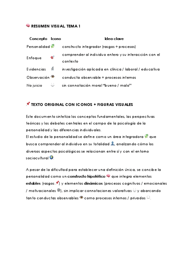 ? Apuntes de Psicología de la Personalidad y Diferencias Individuales I ? ¿Te cuesta organizar tanta teoría y autores? Aquí tienes un material claro y resumido para que estudiar sea mucho más fácil: ✔️ Síntesis de las principales teorías de la personalida