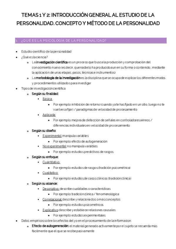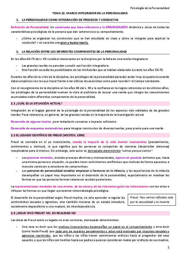 Apuntes completos de psicología de la personalidad con anotaciones de clase (profesor Jesús Sanz)