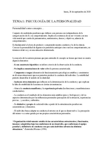 Apuntes - Psicología de la personalidad