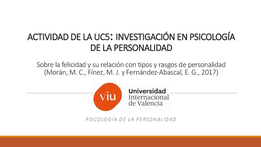 Actividad 5 UC5: Exposición en PowerPoint acerca de la Investigación en la Psicología de la Personalidad
