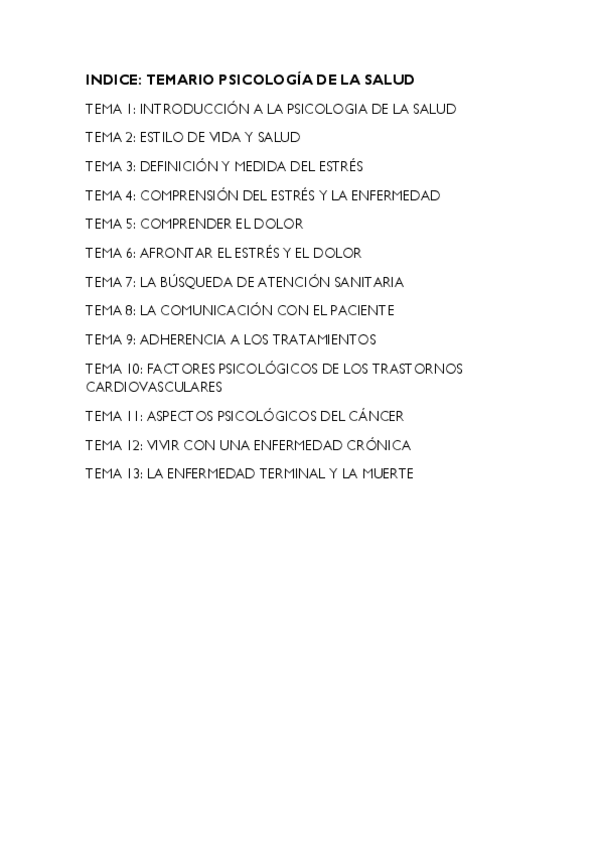 TEMARIO PSICOLOGIA DE LA SALUD